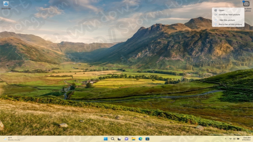 ↑ 좋아하는 콘테스트 메뉴가 있는 아름다운 배경을 보여주는 Windows 스포트라이트, 배경과 달리 다른 배경으로 전환합니다.