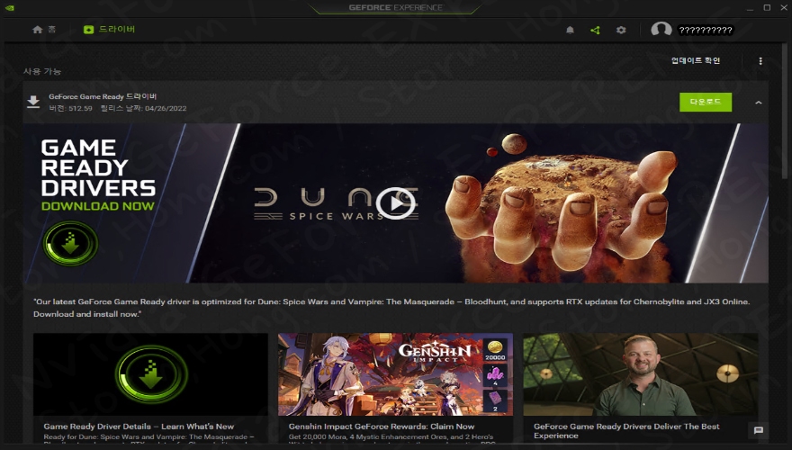 이처럼 Windows 11 (윈도우 11) 을 지원하며, Dune : Spice Wars 등 여러 게임들에 최적화 게임 등 새로운 적용된 Nvidia GeForce Game Ready 512.59 WHQL 드라이버 또한 다양한 사항을 제공합니다. 이에 대한 수정 사항은 ↓ 아래에 자세히 설명할 수 있습니다.