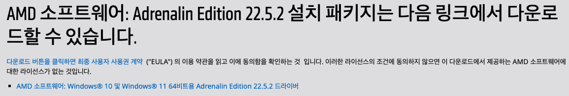 MS Window 10 및 Windows 11 64bit Radeon 소프트웨어 Adrenalin 22.5.2 드라이버 다운