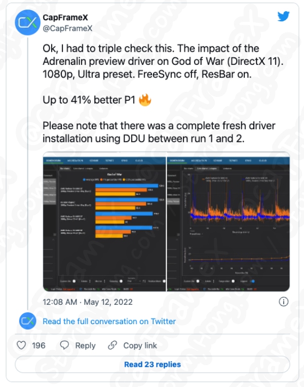 평균적으로 AMD는 DirectX 11 게임으로 약 10% 향상을 기대할 수 있으며 위에 나열된 타이틀은 실제로 빙산의 일각에 불과하다고 말합니다. 예를 들어 독립 테스터는 Crysis Remastered 및 God of War와 같은 게임에서 상당한 향상을 이루었습니다.