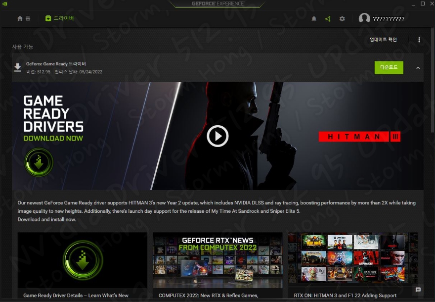 최신 NVIDIA GeForce Driver 512.97 는 2022년 5월 23일 (EST) 업데이트에서는 Nvidia GeForce Driver 는 지난번 개선한 DLSS 지원 게임에 추가하여 Sniper Elite 5, My Time At Sandrock , Hitman 3 외 12종 이상의 향상된 지원 및 업데이트에 대한 지원을 제공하는 업데이트를 진행했다고 합니다.