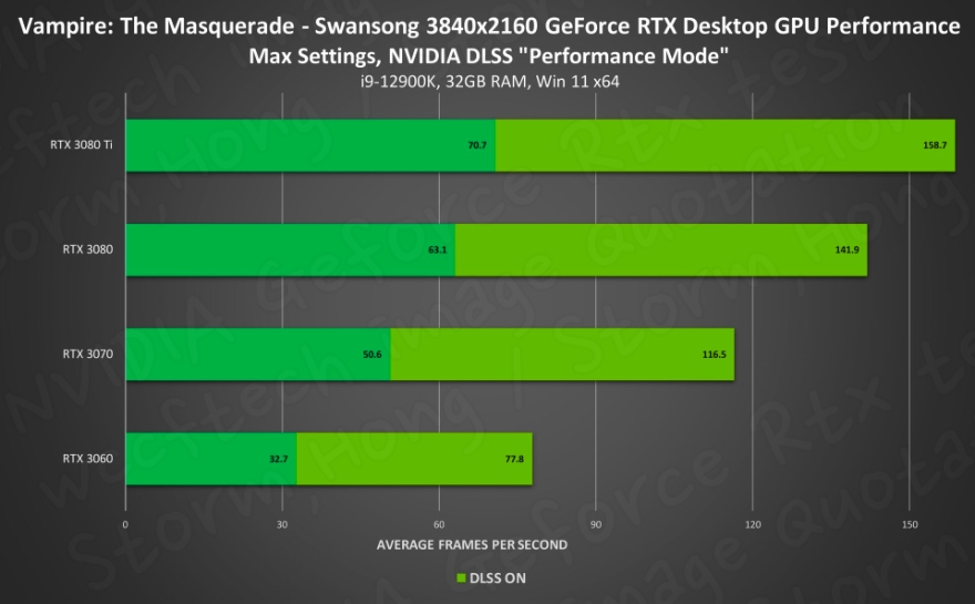 이번 달 초 NVIDIA DLSS 지원으로 출시된 또 다른 게임은 Vampire: The Masquerade - Swansong 입니다. NVIDIA는 4K 성능 모드에서 성능을 두 배 이상 높일 수 있다고 말합니다.