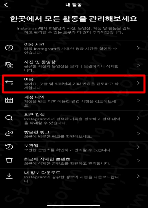 이러한 기능을 통해서 자신의 '좋아요' 를 누르는 활동 관리를 해보시기 바랍니다.