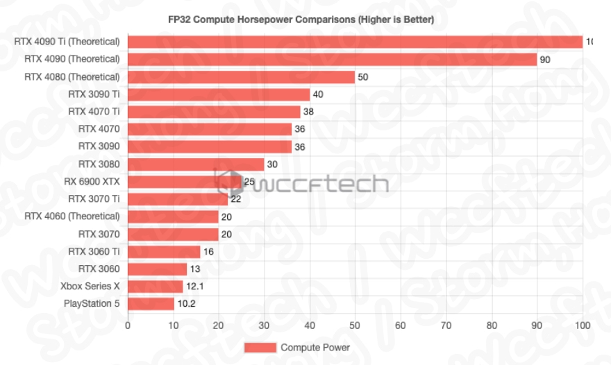 이는 이전 버전에 비해 GeForce RTX 4060 그래픽 카드의 컴퓨팅 성능이 약 54% 향상되며, 해당 부서에서도 크게 향상될 것으로 예상, 예측, 루머, 소문의 정보가 나타났으며, RT 및 Tensor 코어 성능은 고려하지 되지 않은 것으로 보인다고 알려졌습니다. 이제 FLOP은 그래픽이나 게임 성능을 반드시 반영하는 것은 아니지만 비교에 사용할 수 있는 메트릭을 제공할 것으로 보입니다.