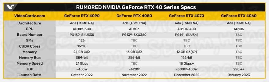 NVIDIA GeForce RTX 4090 GeForce RTX 4080 GeForce RTX 4070 출시일에 대한 예상 예측 루머 소문의 정보가 나타