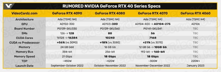 NVIDIA GeForce RTX 4090 GeForce RTX 4080 GeForce RTX 4070 출시일에 대한 예상 예측 루머 소문의 정보가 나타