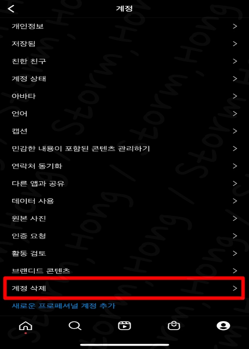 7. 여기서 '계정 삭제' 를 눌러줍니다.