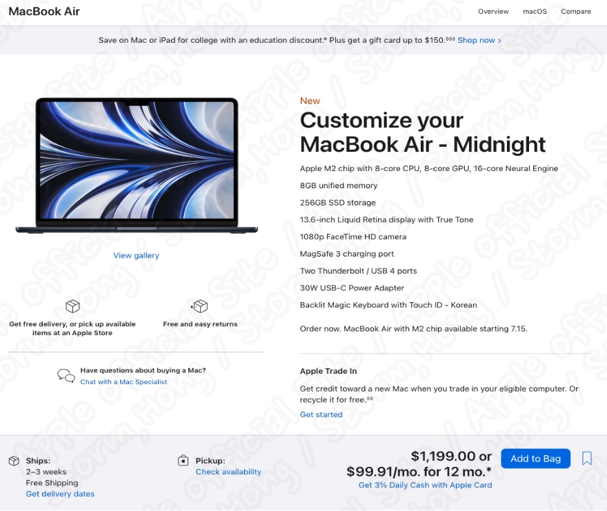 M2 MacBook Air 사전 주문 일자와 예약 구매 배송일 등장