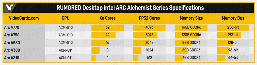 - Intel 에서 출시한 Arc GPU 중 Alchemmist A 시리즈 7가지 제품에 대한 새로운 정보 등장? - 2022년 04월 25일