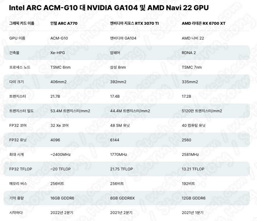 - Intel 에서 출시한 Arc GPU 중 Alchemmist A770 데스크탑 게이밍 그래픽 카드에 대한 정보가 나타났다? - 2022년 04월 16일