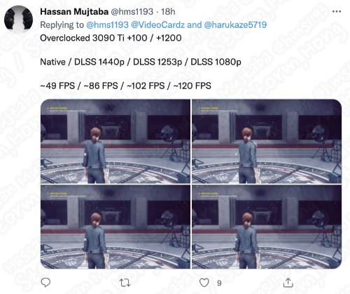 따라서 벤치마크에 사용된 DLSS 버전에 따라 NVIDIA GeForce RTX 4090 에 대해 2배 에서 50% 더 높은 성능을 보여 주는 것으로 나타났다고 합니다. 현재 예상, 예측, 루머, 소문으로 알려지고 있는 NVIDIA GeForce RTX 4090 은 2 ~ 2.5배의 성능 향상을 제공할 것으로 예상, 예측, 루머 소문으로 정보가 나오고 있었지만 이는 벤치마크에서만 예상, 예측, 루머, 소문으로 나오던 정보였다고 알려지고 있습니다. 또한 이러한 수치가 게임 성능도 적용이 된다면, Ada Lovelace 는 지금까지 본 수치 중 NVIDIA 에서 가장 큰 성능 향상 중 하나가 될 것으로 보입니다. 이러한 결과가 사실이라고 가정할 때 게이머는 100 FPS 이상의 4K 게임 플레이가 가능할 것으로 보입니다.