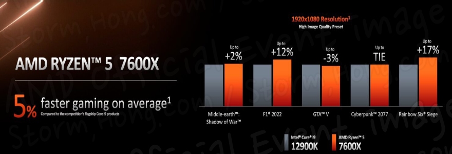 이는 게임 및 컨텐츠 작업에서 최적화된 intel Core i9-12900K 에 대한 AMD Ryzen 9 7950X 의 성능은 CPU 벤치마크에서 -1% ~ +23%% 더 빠르고 작업 부하 로드 비교 시 +36% ~ 62% 더 빠르다고 설명했습니다.