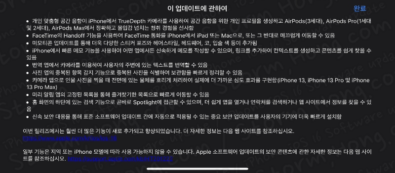 -> 또한 iOS 15.7 / iPadOS 15.7 은 ↓아래 링크를 클릭해 주시기 바랍니다.