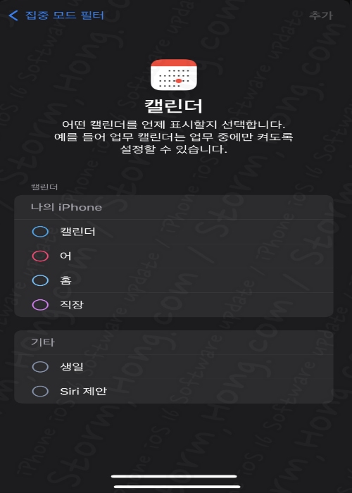이 기능은 특정 조건을 상세하게 만들어 줄 수 있는 모드입니다. 캘린더를 자신이 원하는 모드만 설정을 할 수 있으며, 알림을 허용한 사람의