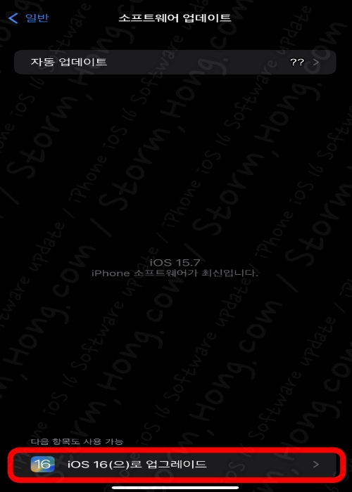 -> iOS 16 을 업데이트하는 경우, iOS 15.7 업데이트가 진행되지 않습니다. 선택 후 진행하시기 바랍니다.