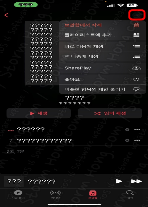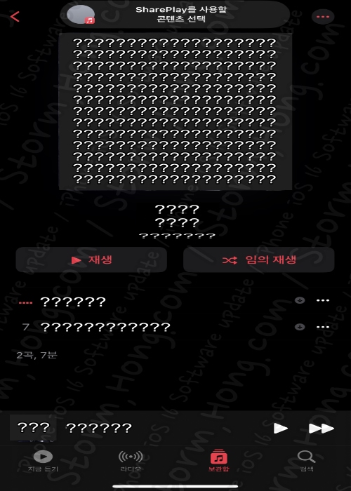 6) ↑ 선택할 수 있는 SharePlay 화면이 나타납니다. 이중에서 예를 들어 ' 음악앱 ' 을 선택하면 아래와 같은