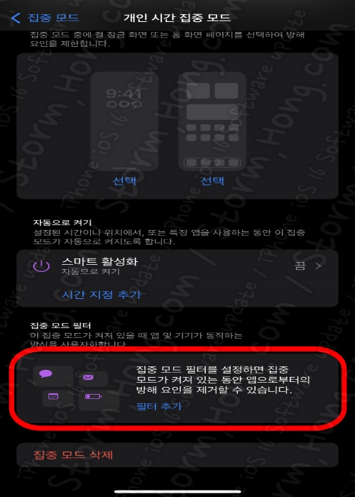 * ' 설정 -> 집중모드 ' 로 들어가 원하는 상태를 선택할 수 있으며, 추가, 특정 사람의 알림만 받도록 설정도 가능하며, 특정 앱만 알림을 받을 수 있도록 설정할 수 있습니다. 기능 추가 중 새로운 것은 '집중 모드 필터'라는 기능이 추가되었다는 것입니다.