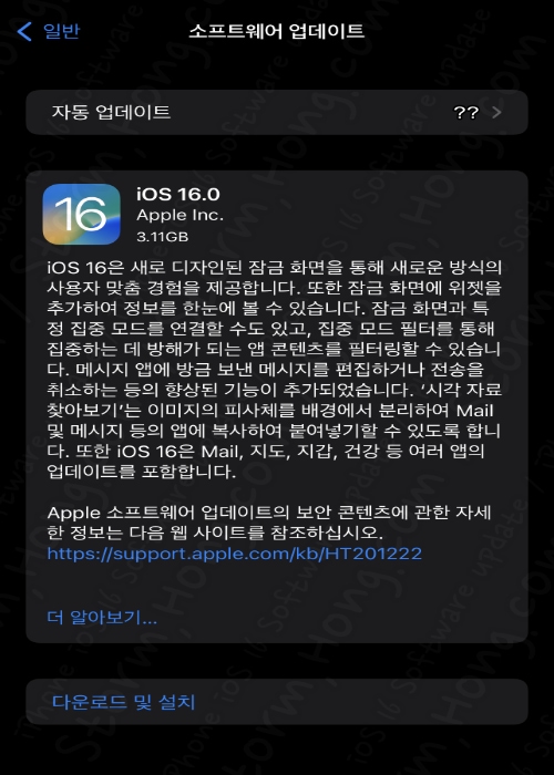 - ↓ iOS 16 주요 업데이트 내용으로는 다음과 같습니다.
