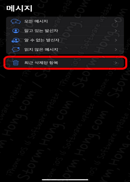 3) 메시지 분류 메뉴에서 ' 최근 삭제된 항목 ' 을 선택해 줍니다.