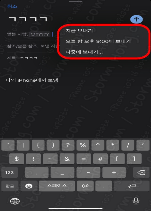 * 보내기 버튼을 꾹 눌러 주면 새로운 예약 보내기가 가능합니다. <확인의 경우 나중에 보내기가 가능합니다.>