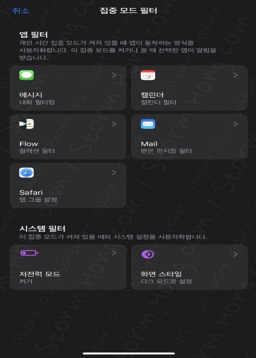 메시지만 보여주도록 필터링이 가능하다는 것입니다. Safari 를 사용한다면, 사파리 탭 그룹에서 설정한 모드에 맞는 탭 그룹만 보이도록 설할 수 있습니다.