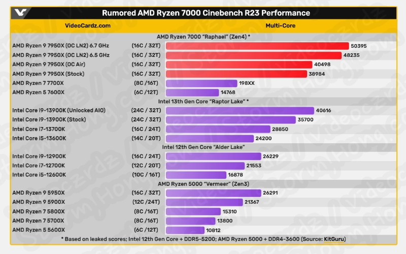 - AMD Ryzen 9 7950X 16 코어 intel Core i9-13900K 16 코어 CPU 벤치마크 점수가 나타났다?