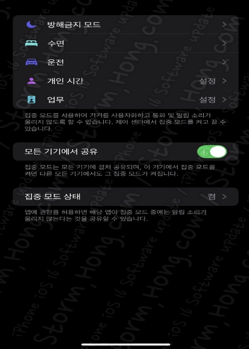iOS 16 에서 집중 모드 사용하는 방법은 무엇인가?