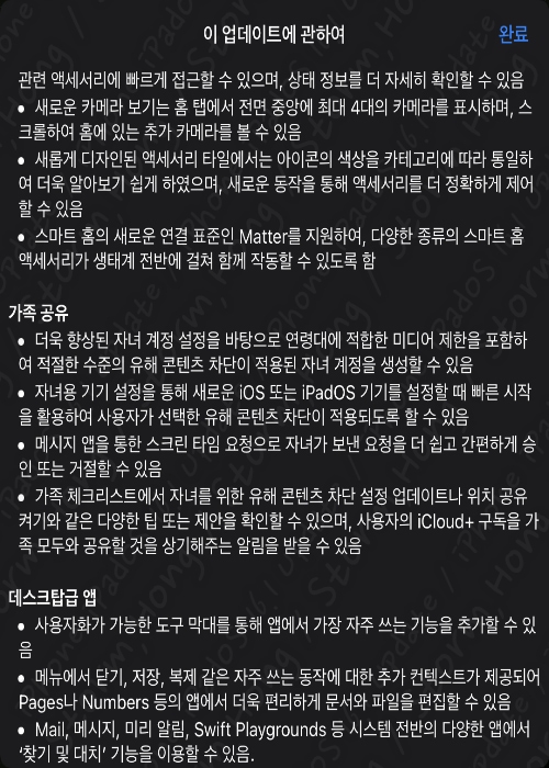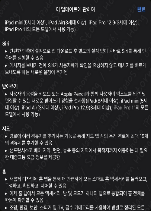 * iPadOS 15.7 은 성능 향상 및 기본적인 버그를 체크 업데이트 외 에도 ↓ 아래와 같은 업데이트가 진행되었습니다.