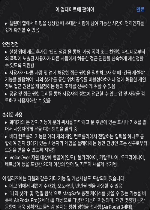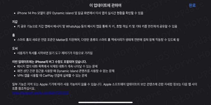 그럼 이번에 업데이트된 iOS 16.1 , iPadOS 16.1 정식 버전의 내용을 살펴보겠습니다.