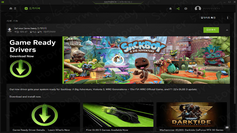 이번 NVIDIA GeForce RTX 4090 출시에 힘입어 드라이버 업데이트가 진행되었습니다. 또한 Sackboy를 위한 RTX 최적화를 제공 및 빅 어드벤처, NVIDIA DLSS 3 for F1 22 및 원클릭으로 여러 게임에 최적화 작업이 포함되어 있습니다..