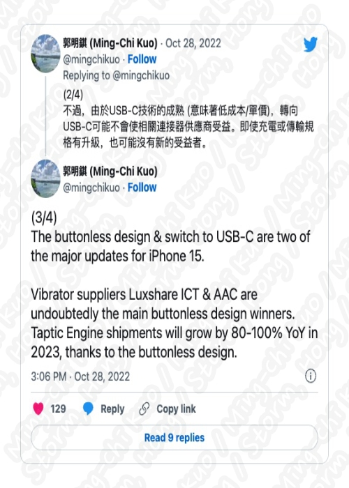 [ iPhone 15 Pro 모델 3개의 Taptic 엔진과 USB-C 를 탑재할 수 있다는 정보가 나타났다? ]