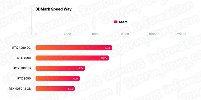 기타 벤치마크 점수에 의하면 NVIDIA GeForce RTX 4080 12GB 그래픽 카드는 3D Mark Speed Way Test 에서 5,382 점수, 3D Mark Time Spy Extreme 에서 10,794 점수 , 3D Mark Fire Strike Ultra 는 13,472 점수 DXR Test 에서는 66.98 FPS 를 기록했습니다.