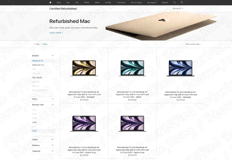 Apple M2 MacBook Air 온라인 스토어 리퍼비시 판매 시작 및 가격은 무엇인가?
