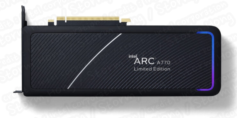 ↑ During the Intel Innovation event in September 2022, Intel announced October 12, 2022, availability of the Intel Arc A770 Limited Edition graphics card with 32 Xe cores and up to 16 gigabytes of memory. (Credit: Intel Corporation)
