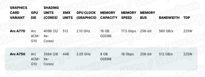 intel Arc Alchemist GPU Arc A770 16GB, A750GB 샘플링 정보 등장?
