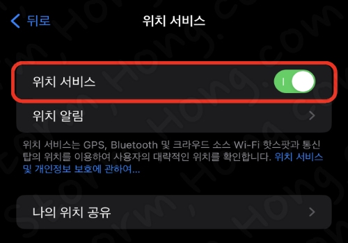 - 위치 기반 서비스가 활성화된 경우 iPhone은 백그라운드에서 계속 활성화됩니다. 이 기능을 비활성화하려면 [설정(Settings)]> [프라이버시 & 보안(Privacy &Security)]> [로케이션서비스 전환 - 위치 서비스 (Toggle Off Location Services)]를 선택합니다. 이렇게 하면 iOS 16의 배터리 방전 문제가 해결됩니다.