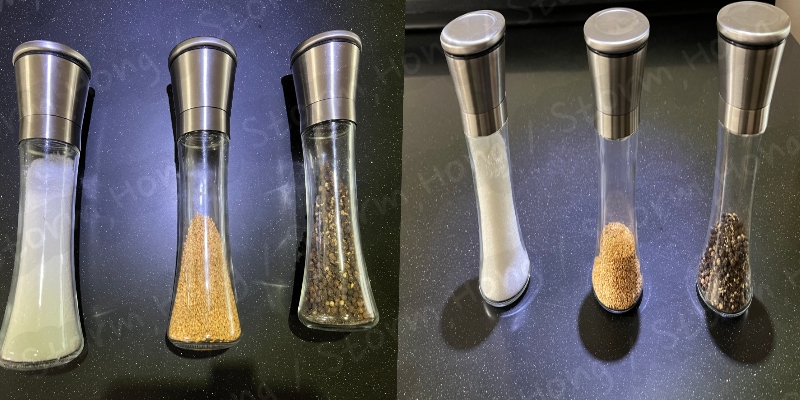자동이 아닌 수동인 점은 정말 아쉽지만, 사용은 편리했습니다. 뚜껑을 열고 스테인리스 몸통을 돌리면, 날이 돌아가며, 후추가 갈리는 등 입자를 원하는 크기로 나오며, 이를 사용할 수 있습니다.