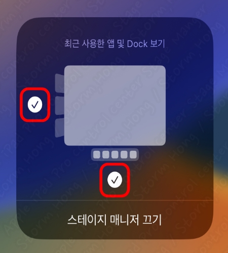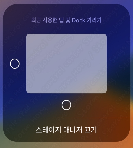 2. Control Center 에서 Stage Manger 아이콘을 길게 눌러 옵션을 표시해 줍니다.