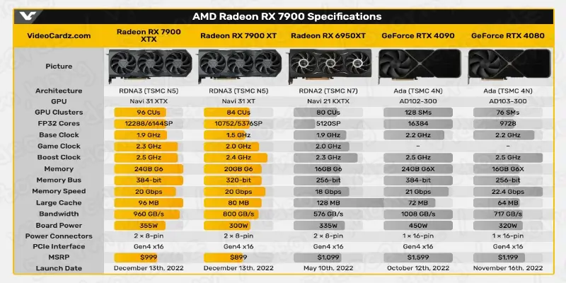AMD Radeon RX 7900 XTX 24GB Navi 31 XTX 출시 사양 및 가격은 무엇인가?