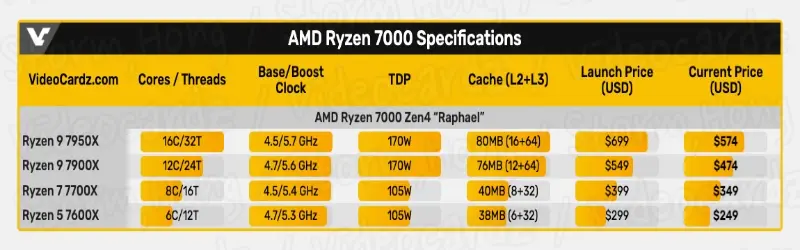 AMD Ryzen 7000 Raphael Desktop CPU Specs: