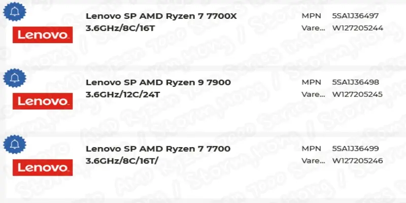 AMD Ryzen 9 7900 12 Core 및 Ryzen 7 7700 8 Core Zen4 Non-X CPU는 Lenovo 를 통해 정보가 나타났다?