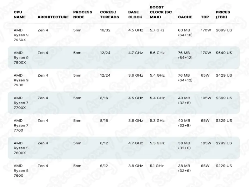 AMD Ryzen 7000 Raphael Desktop CPU Specs: