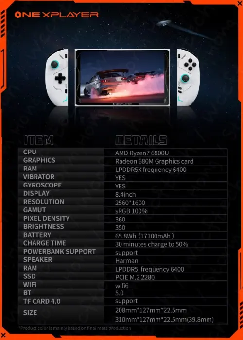 이에 대해 사양 리스트가 공개되면서, 최신 정보와 함께, 흰색 파란색의 대체 컬러웨이가 표시되기 때문에, OneXPlayer 2는 시스템에서 커스터마이징 가능한 RGB 유저에게만 제공되는 정보가 아니라는 점입니다. 또한 이전에 보고된 OneXFly 시스템에 채택한 색상과 일치하는 것으로 알려졌습니다.