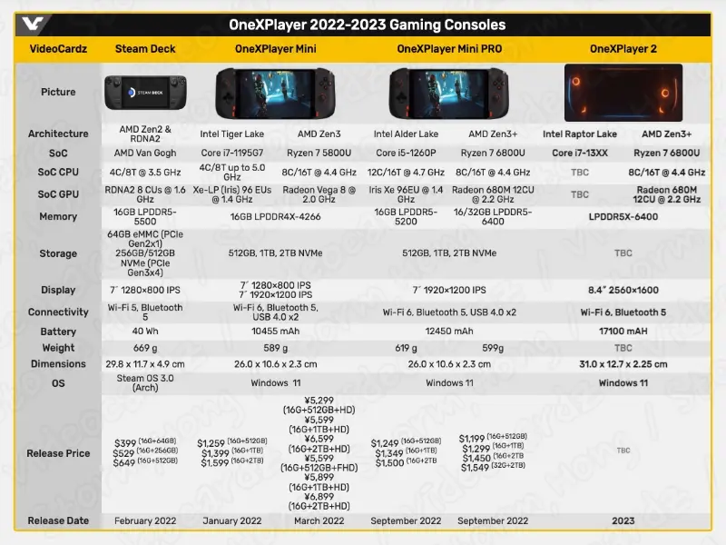 ↑ Exclusive OneXPlayer 2 specification list. Image source: OneXPlayer - wccftech image