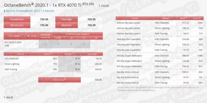 ↑NVIDIA GeForce RTX 4070 Ti OctaneBench Mark prediction image