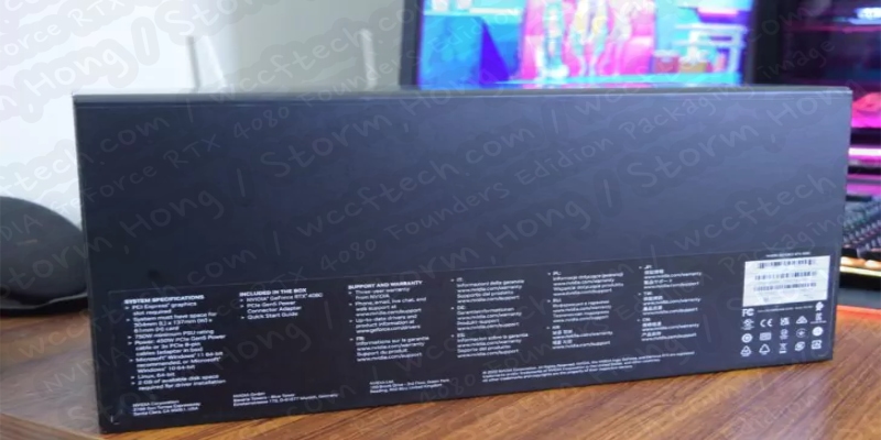 카드의 전체 적인 크기의 숫자는 뒷면에 표기 되지 않았지만 카드의 폭은 NVIDIA GeForce RTX 4090 Founders Edition 및 NVIDIA GeForce RTX 4080 Founders Edition 의 폭 137mm 보다 작은 112mm 로 표시되었습니다. 이는 예상, 예측, 루머, 소문의 정보로 나타난 내용에 의하면, PCIe Gen 5 케이블 어댑터와 함께 출시될 것으로 보이며, NVIDIA GeForce RTX 4070 Ti AIB 카드와 마찬가지로 2x8 핀 설계를 사용할 것으로 보인다는 정보도 함께 나타났습니다.