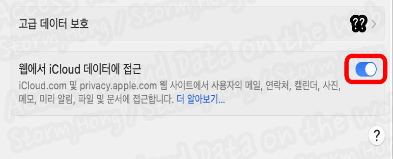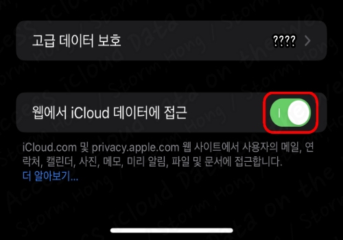 5. 녹색이 회색으로 변했는지 확인한 후 'iCloud 데이터 웹에서 액세스 하지 않도록 하시겠습니까?' 라는 문구가 나타납니다.