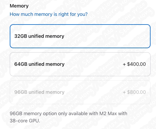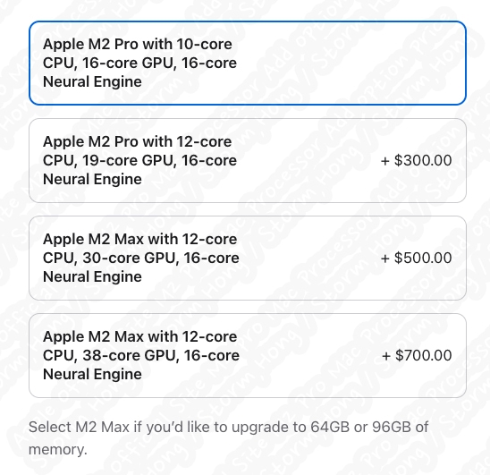 Apple Silicon M2 Pro , M2 Max 도 M2, M1 Series 처럼 프세서팁에 메모리가 달려있는 통합 메모리기 때문에 제품을 구매하는데 있어 자신의 메리를 추가하지 않은 상태에서는 업그레이드가 불가능 합니다.
