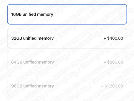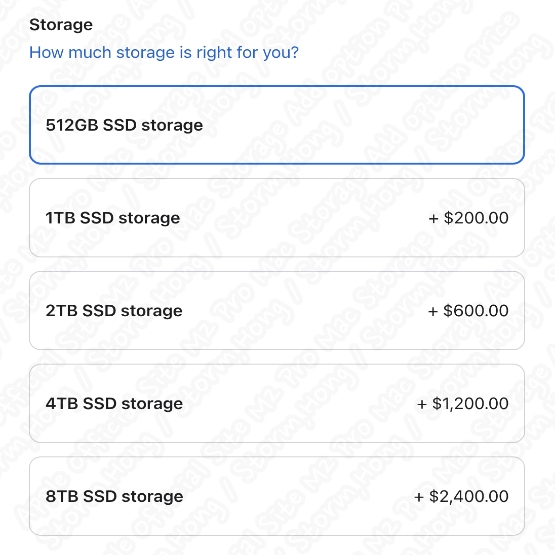 * 16 인치 M2 Pro MacBook Pro 에 기본 모댈은 USD 2,499 ($) 이며 아래 옵션을 추가 구매할 경우 가격은 상승하게 됩니다.