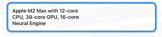 * 14 인치 M2 Max MacBook Pro 에 기본 모댈은 USD 3,099 ($) 이며 아래 옵션을 추가 구매할 경우 가격은 상승하게 됩니다.